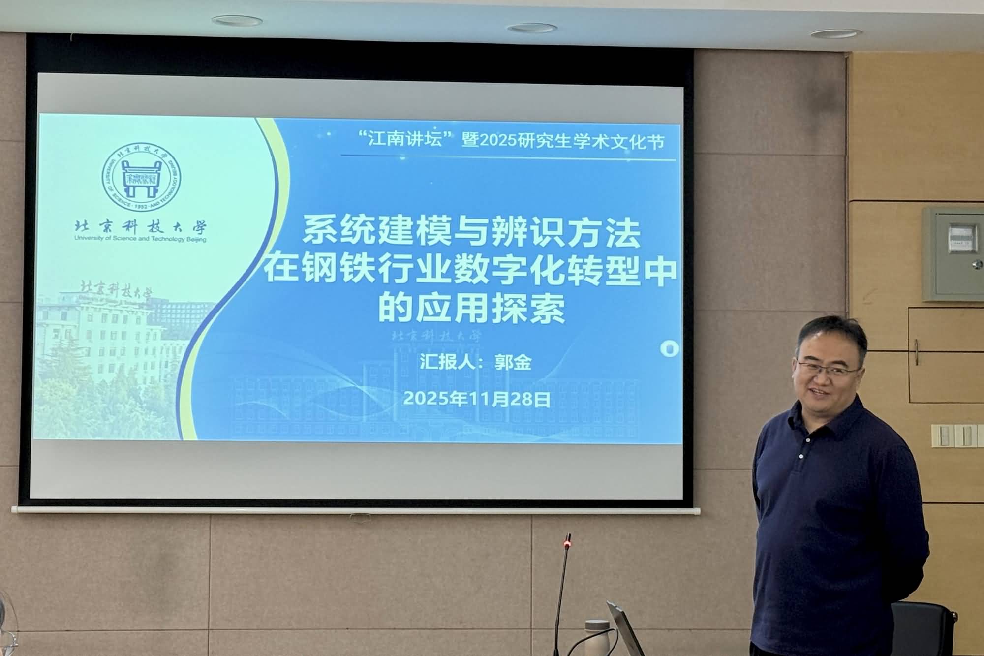 11月28日,由研究生院主办、理学院承办的“江南讲坛”暨2025年研究生学术文化节机器学习与系统辨识讲坛在钱伟长楼201会议室开讲。本次论坛邀请了深圳大学吴晓群教授、北京理工大学俞成浦教授、中国科学院数学与系统科学研究院赵文虓研究员、中国科学院数学与系统科学研究院牟必强副研究员以及北京科技大学郭金教授。论坛由理学院副院长陈晶教授主持,理学院部分教师与数学专业学生参加了论坛。