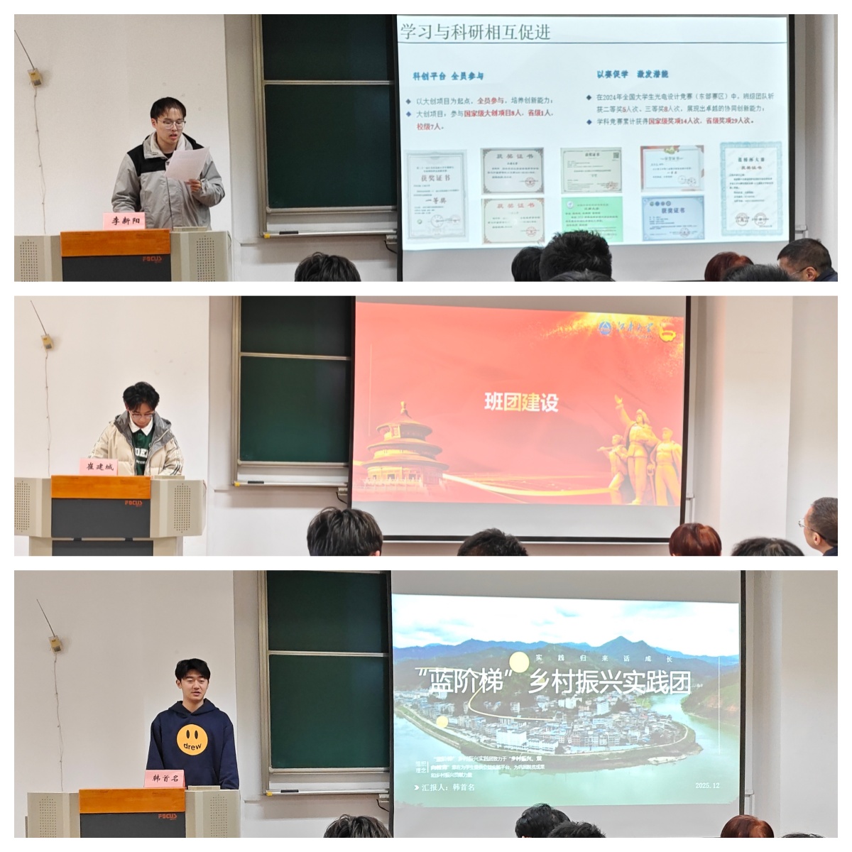 风采展示环节,光科2203团支部李新阳、光科2303团支部崔建城先后登台,围绕支部建设、学风引领、志愿服务、科技创新等方面分享经验。两个支部各具特色、成果丰硕的展示,充分展现了理学院基层学生组织团结进取、务实创新的精神风貌。
