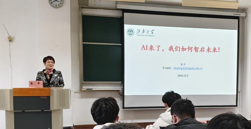 随后,朱平带来《AI 时代,我们如何智启未来》专题报告。她从人工智能的发展历程、技术前沿及未来趋势切入,结合鲜活案例,深入浅出地阐释了AI技术对学习、科研与未来职业发展的深远影响,鼓励同学们主动拥抱时代变革,培育科学思维与创新意识,在智能时代找准定位、积极作为。