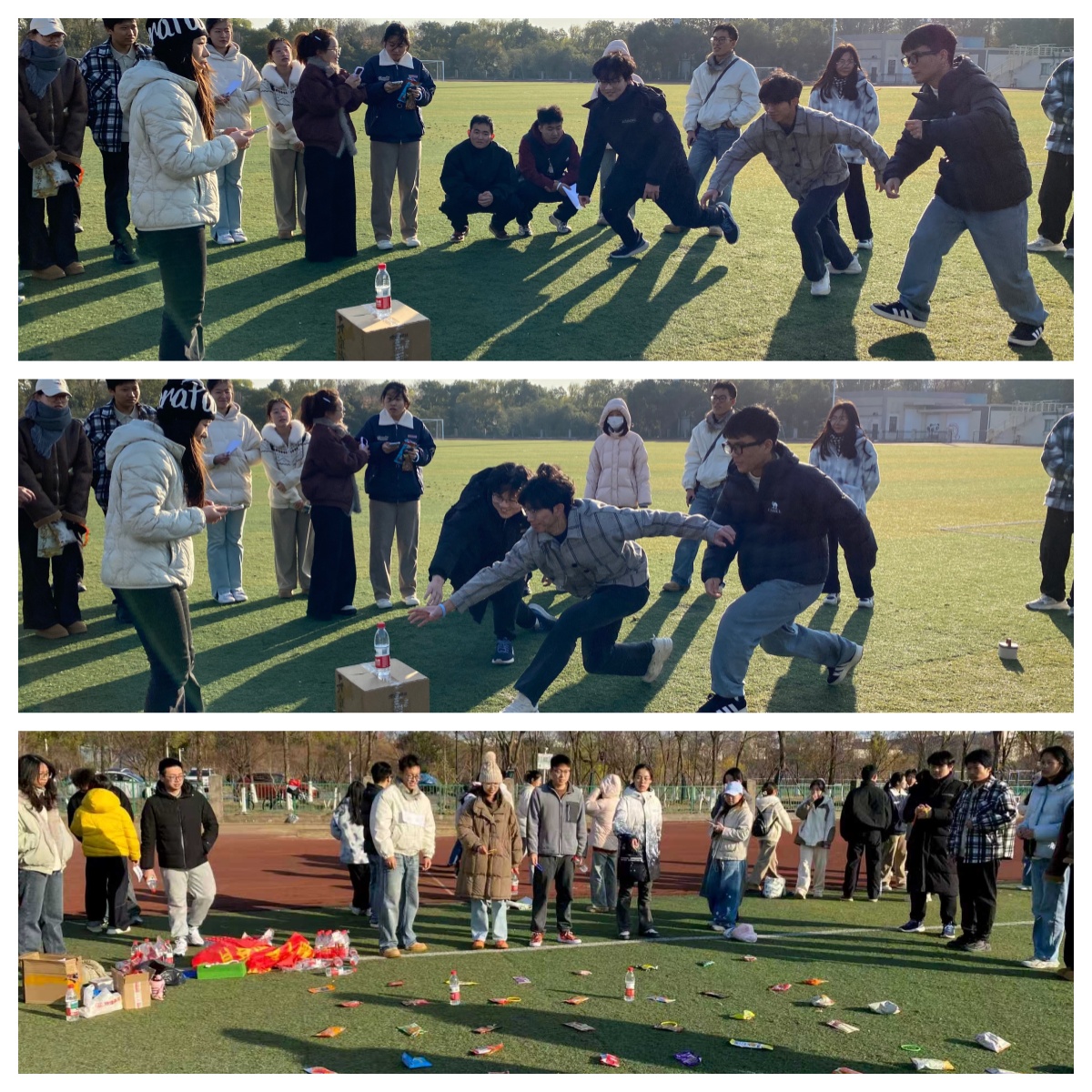 与此同时,现场开展的“听歌识曲”“套圈圈”等趣味活动也得到热烈响应。同学们在音乐竞猜中展示才艺,在轻松游戏中赢得奖品,现场笑声不断、气氛热烈。这些活动不仅调节了比赛节奏,也进一步拉近了同学间的距离,体现了“运动中交流,欢乐中相识”的活动理念。活动最后,根据各环节累计积分,评选出了一、二、三等奖,并为获奖队伍颁发奖品,为本次活动画上了圆满的句号。