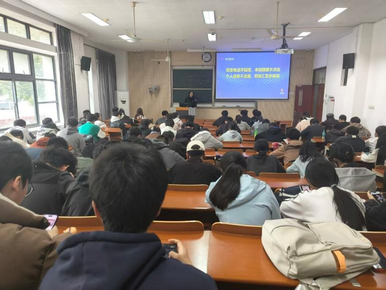 宣讲中,王警官结合当前电信网络诈骗案件特点,围绕大学生群体中易发、多发的诈骗类型进行了系统讲解。他结合近期真实案例,重点介绍了刷单返利诈骗、冒充客服诈骗、校园贷诈骗、游戏虚拟交易诈骗等常见诈骗形式,深入剖析了诈骗分子的作案手法、话术特点和心理诱导方式,并针对不同类型诈骗提出了具体防范建议,提醒同学们在日常学习生活中时刻保持警惕,切实增强风险识别和自我保护能力。