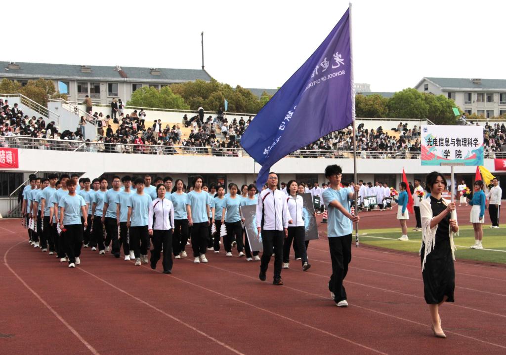 春光明媚,草木葱茏。2026年4月10日,江南大学第二十五届运动会在校区体育场隆重开幕。暖阳普照赛场,青春激荡人心,光电信息与物理科学学院师生以饱满热情投身赛场,以昂扬斗志诠释竞技精神,用文明风范彰显团队品格,在绿茵场上书写了属于光电物理人的奋篇章。